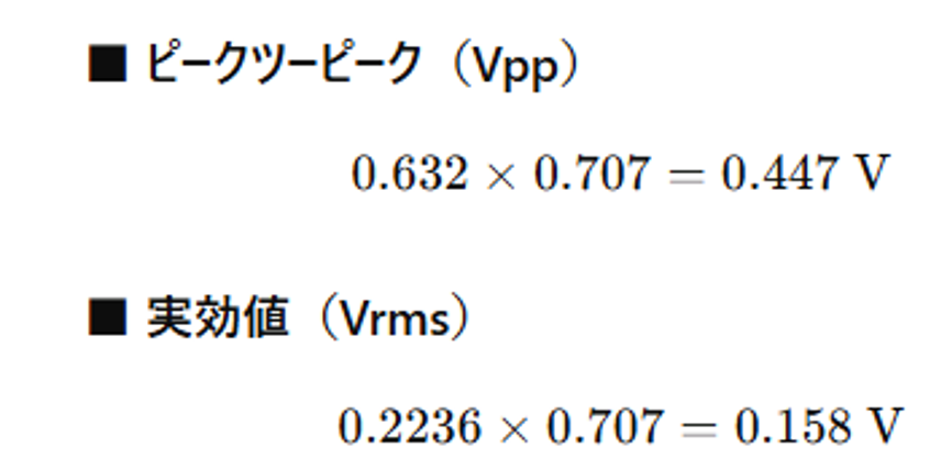 今回はデータシートに記載されている実効値Vrmsに加えて、ピークツーピークVpk-pkも測定します。