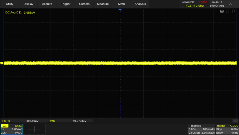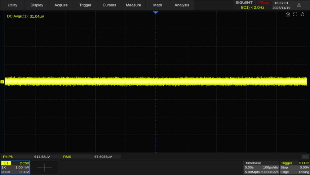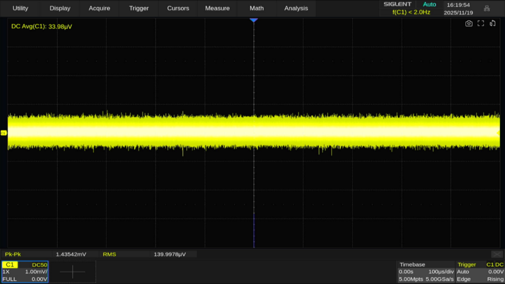 SDS5000X HDシリーズはSiglentの高分解能オシロスコープ(HD系列)に位置付けられますが、本体のノイズレベルが高いと高分解能も意味をなしません。