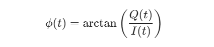 位相復調: 複素信号から瞬時位相 Φ(t) を算出します。通常、以下の計算式を用います。