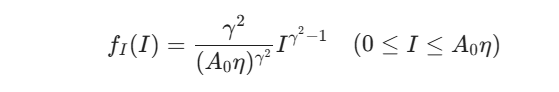衛星の揺れが水平・垂直方向に独立したガウス分布(分散 $\sigma_s^2$)に従うと仮定すると、中心からのズレ角度 $r$ はレイリー分布に従います。これに基づく受信強度の確率密度関数(PDF)は以下のようになります。