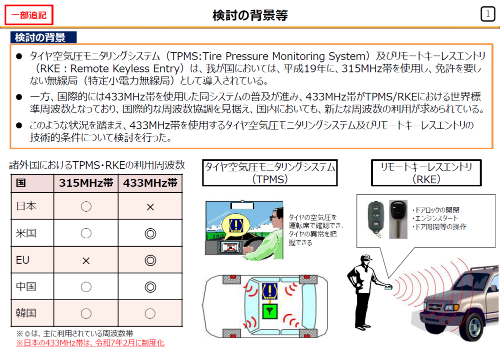 下記資料では「433MHz帯タイヤ空気圧モニタ及びリモートキーレスエントリ」について詳しく解説されています。