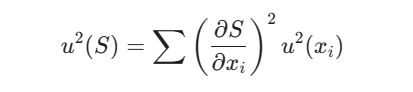 ガイドライン第4章では、Sパラメータの不確かさ u(S) を計算するために、各誤差要因 xi に対して「感度係数 ci」を用いた線形和(または二乗和)モデルを提示しています。