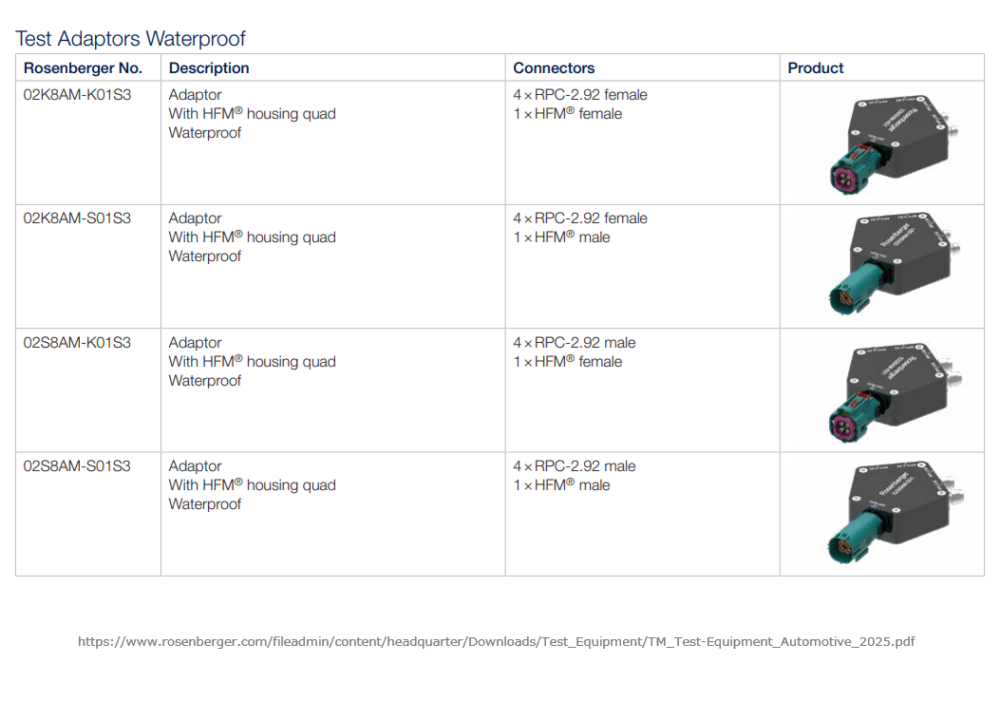 MultiGBASE-T1(IEEE 802.3ch)の評価において、Rosenbergerの**HFM(High-Speed FAKRA-Mini)から2.92mm(Kコネクタ)**への変換アダプタを使用する場合、測定の「周波数限界」と「信号整合性」が極めて重要なポイントになります。