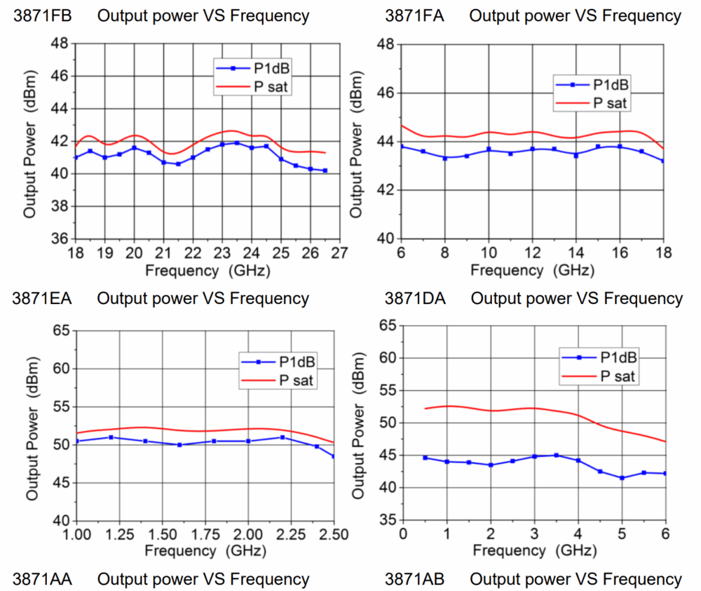 | No. | モデル型番 (Model) | 動作周波数 (GHz) | 利得 (dB) | 飽和出力電力 (dBm Typ.) |