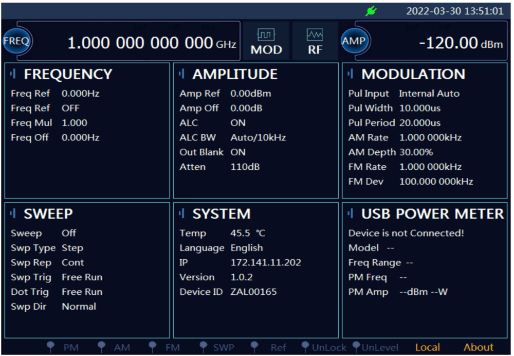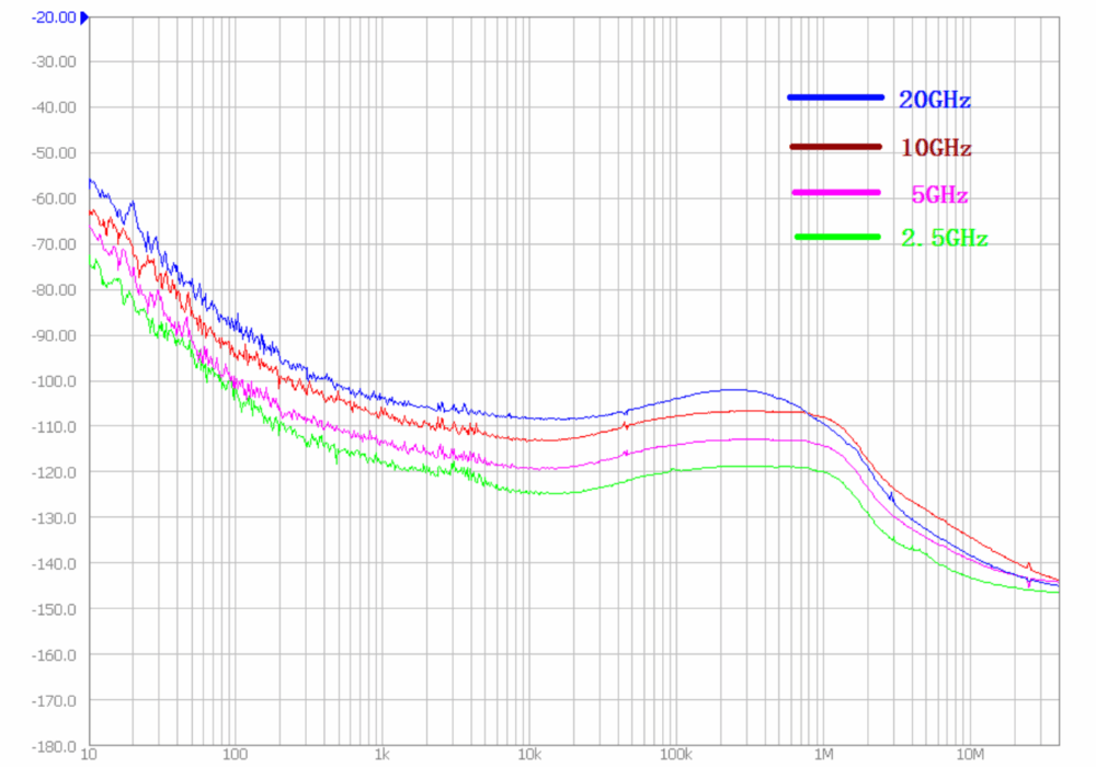 | 20GHz<f≤40GHz | −70dBc/Hz@100Hz、−86dBc/Hz@1kHz、−96dBc/Hz@10kHz、−94dBc/Hz@100kHz |