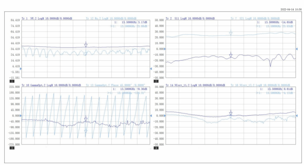 | 高調波抑圧 | −13 dBc(≤4 GHz)→−51 dBc(14–45 GHz) 他 | −13 dBc(≤3.2 GHz)→−31 dBc(14–55 GHz) 他 |