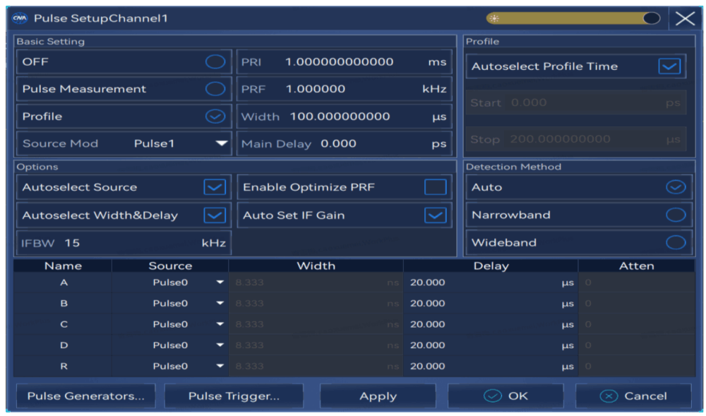 パルス周期最大70秒、パルス分解能8.3ns、42ns未満の広帯域同期パルス測定に対応。内部同期/外部同期モード切替、内部4パルス源による多モード変調、ワイドバンド同期測定/ナローバンド非同期測定の自動切替、ナローパルス測定性能を向上させる適応ナローバンドフィルタを搭載。さらに3系統のトリガ入出力を備え、柔軟なシステム連携を実現し、パルスSパラメータ、パルスエンベロープ、パルスポイント測定に対応します。
