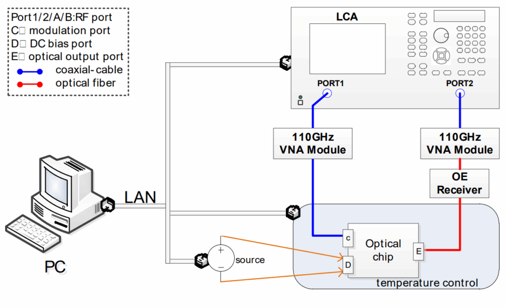 周波数範囲:10 MHz ~ 110 GHz。光電テストモジュールのデータ検証に使用。 |