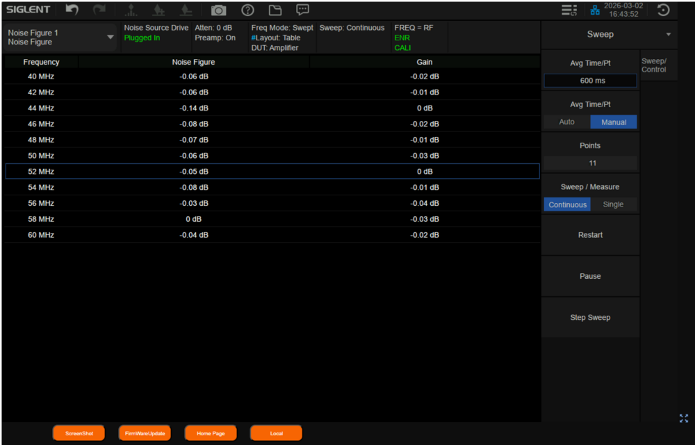 スキャン完了後、NF測定データを確認