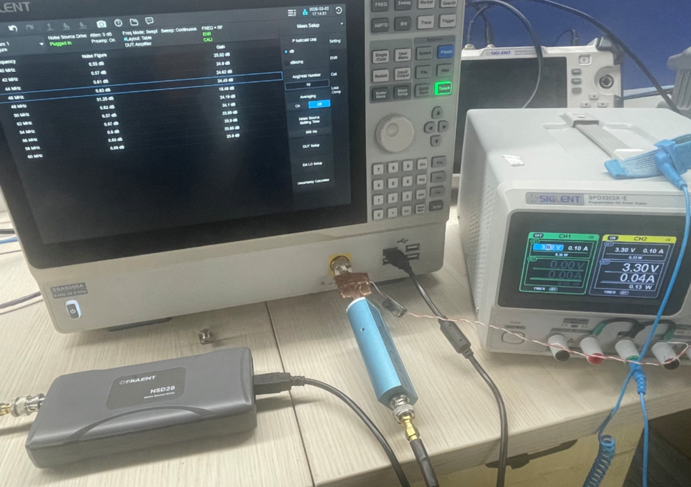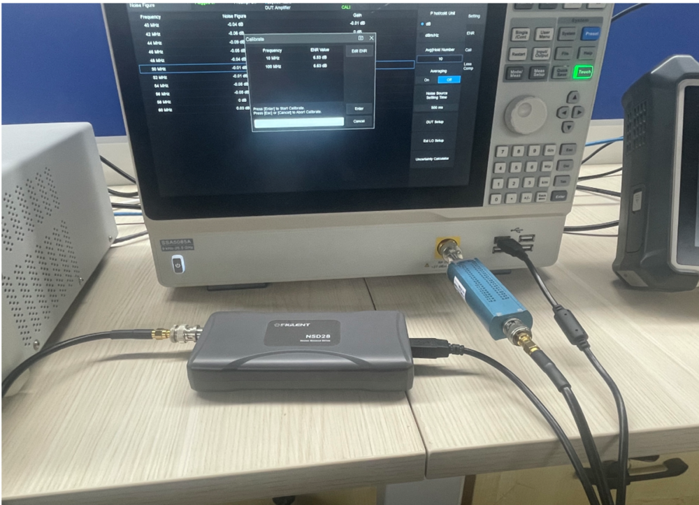 NF校正環境の構築(SSA5000には内蔵ノイズ源制御モジュールが含まれていないため、外部制御モジュールを追加し、ノイズヘッドと制御モジュールを接続する必要がある)