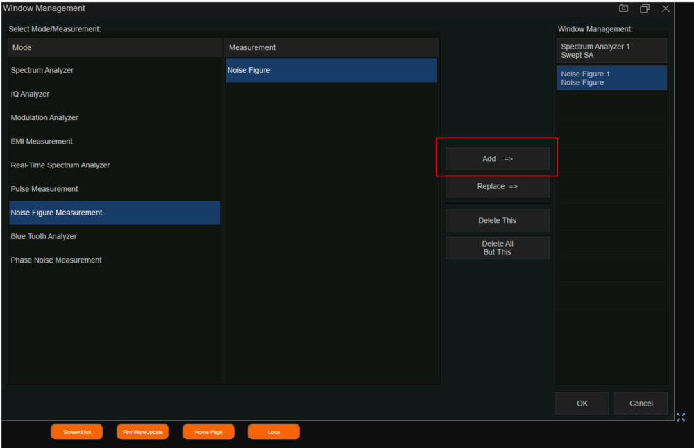 モード切替画面でノイズフィギュア測定モードを選択して追加